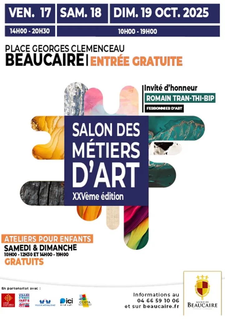 La Mairie de Beaucaire vous donne rendez-vous les 17, 18 et 19 octobre pour la XXVème édition de son Salon des Métiers d’Art !